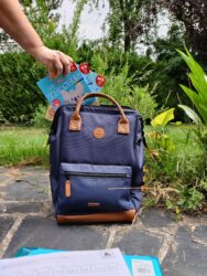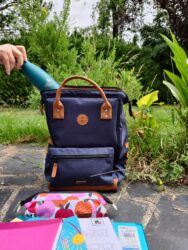 C’est un sac qui fait sac à dos et sac bandoulière, parfait pour aller à l’école en vélo