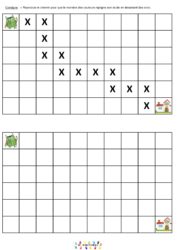 Aider le monstre à rejoindre l’école en traçant le même chemin avec des croix que sur le modèle.
