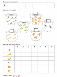 - Compte le nombre d’ingrédients dans chaque chaudron et écris le nombre au dessus du chaudron