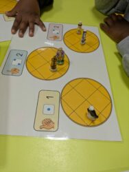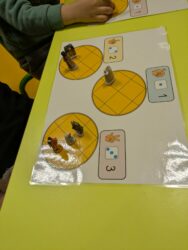 Nous allons mettre des fèves dans les galettes. Tu dois mettre le nombre qui est demandé au dessus de la galette.