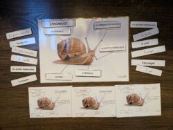Les enfants pourront manipuler les différents mots sur l’anatomie de l’escargot en les replaçant sur le modèle. Trois supports avec les trois graphies sont proposés avec les modèles.
