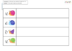 - faire la croix dans le tableau au bon endroit après avoir compté les différents escargots.